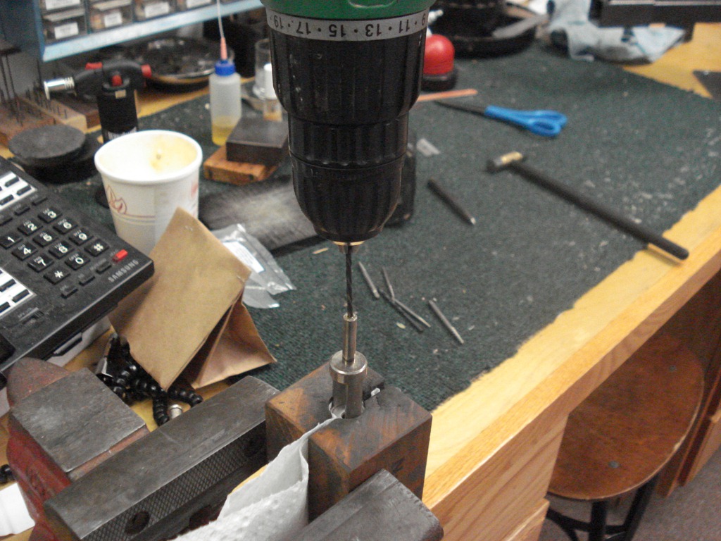 Left Pic – I’m using a left twist drill bit(it cuts opposite of a normal bit) to begin to drill out the broken piece