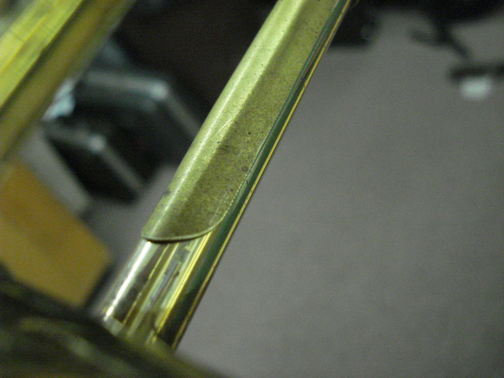 Right Pic – Lacquer removed and patch bent to contour of leadpipe