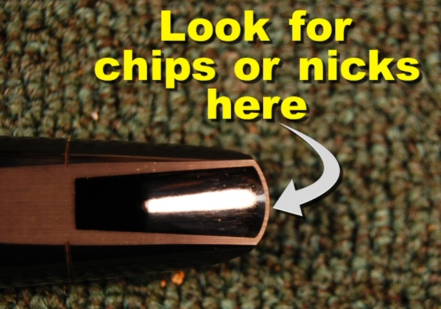 Ever have a clarinet or sax play GREAT one day, then almost totally not play the next day? One of the things I always check on clarinets and saxes is the condition of the tip of the mouthpiece. It is amazing how a small nick or chip in the tip of the mouthpiece can dramatically change the playing characteristics of an instrument. Mouthpieces get dropped, and often the result is a chipped or nicked mouthpiece tip. Chips or nicks in the rail(s), the flat sides running down to where the reed clamps on, can also have an effect, but not nearly as much as a nick in the tip. Solution? Unfortunately, replacement of the MP.